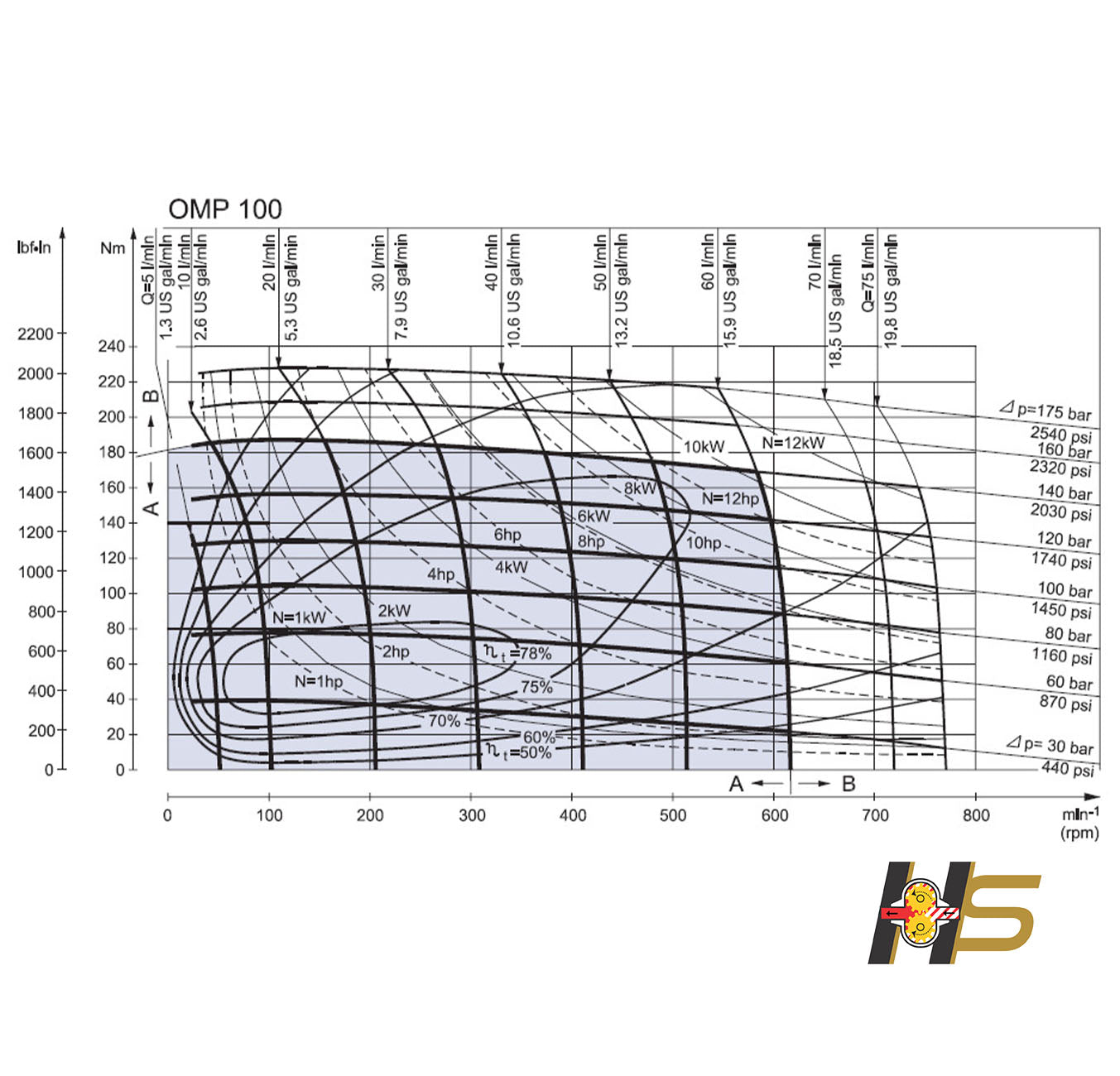 - Deslocamento: 100 cm³/rot