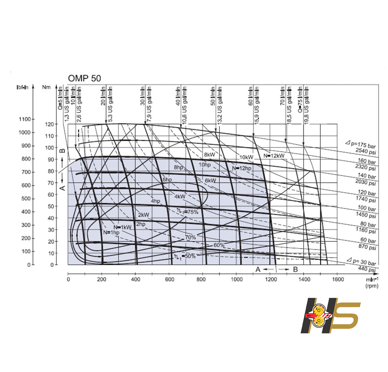 - Deslocamento: 50 cm³/rot
