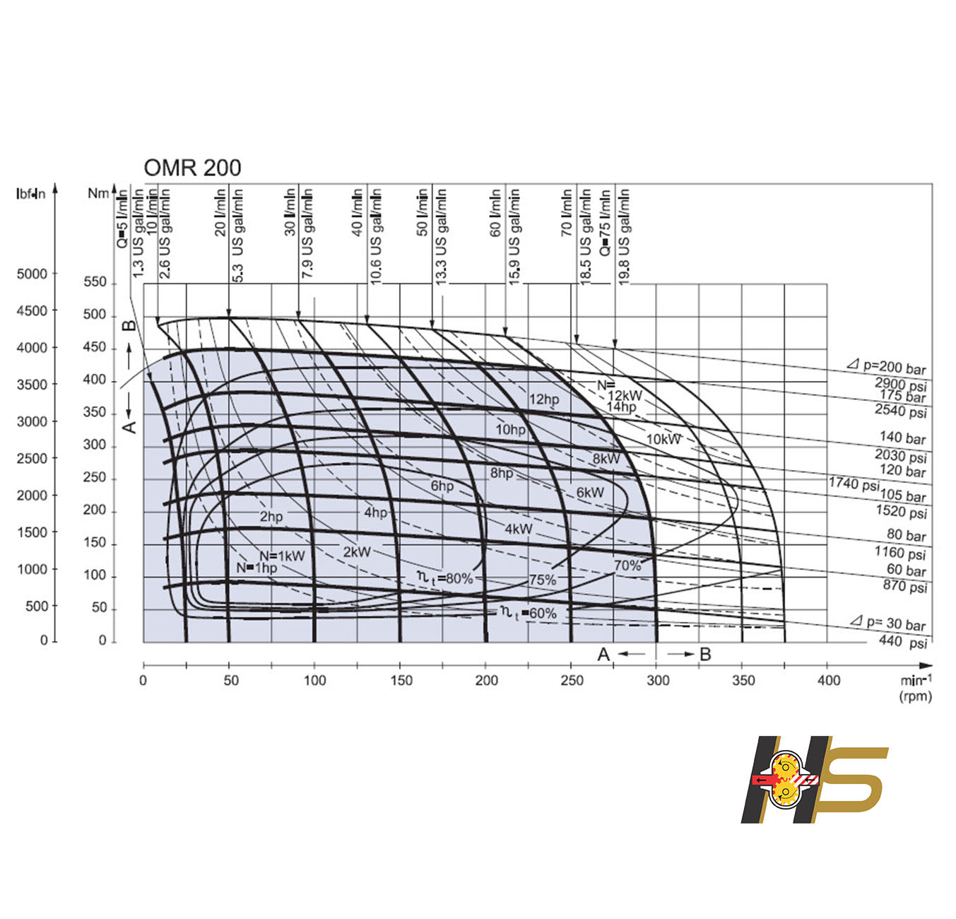 - Deslocamento: 200 cm³/rot